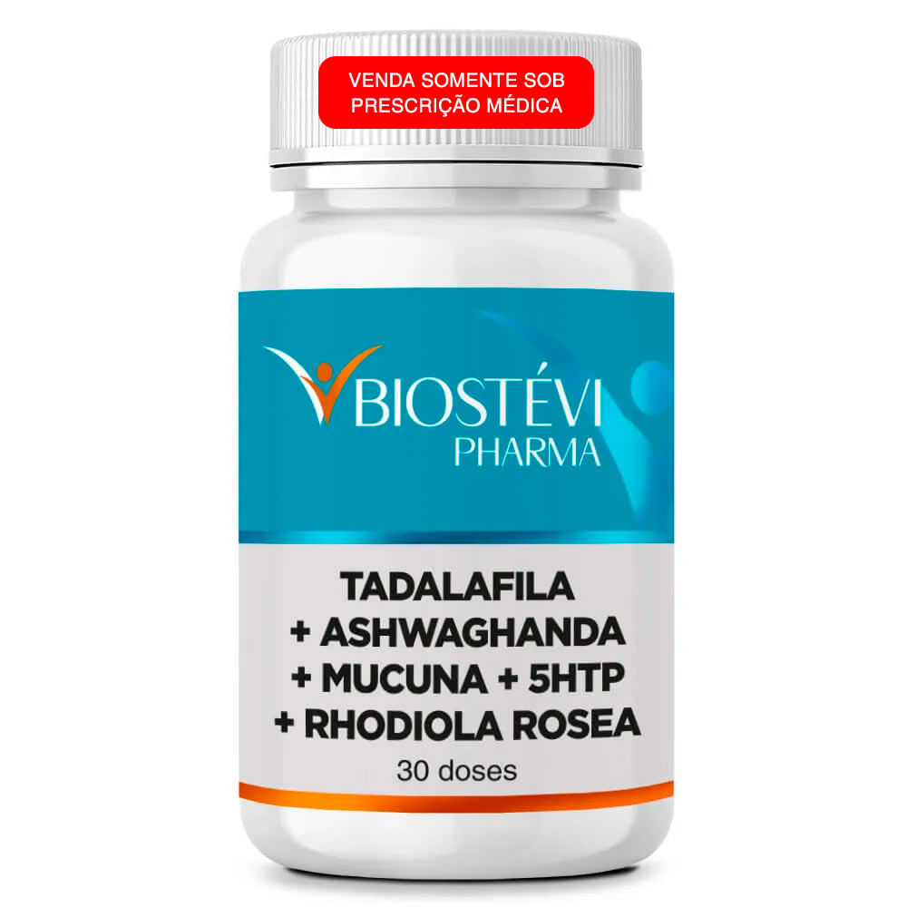 Tadalafila 5mg Ashwaghanda 200mg Mucuna 200mg Rhodiola Rosea 200mg 5 HTP 100mg Excipiente q.s.p Frasco contendo 30 doses |