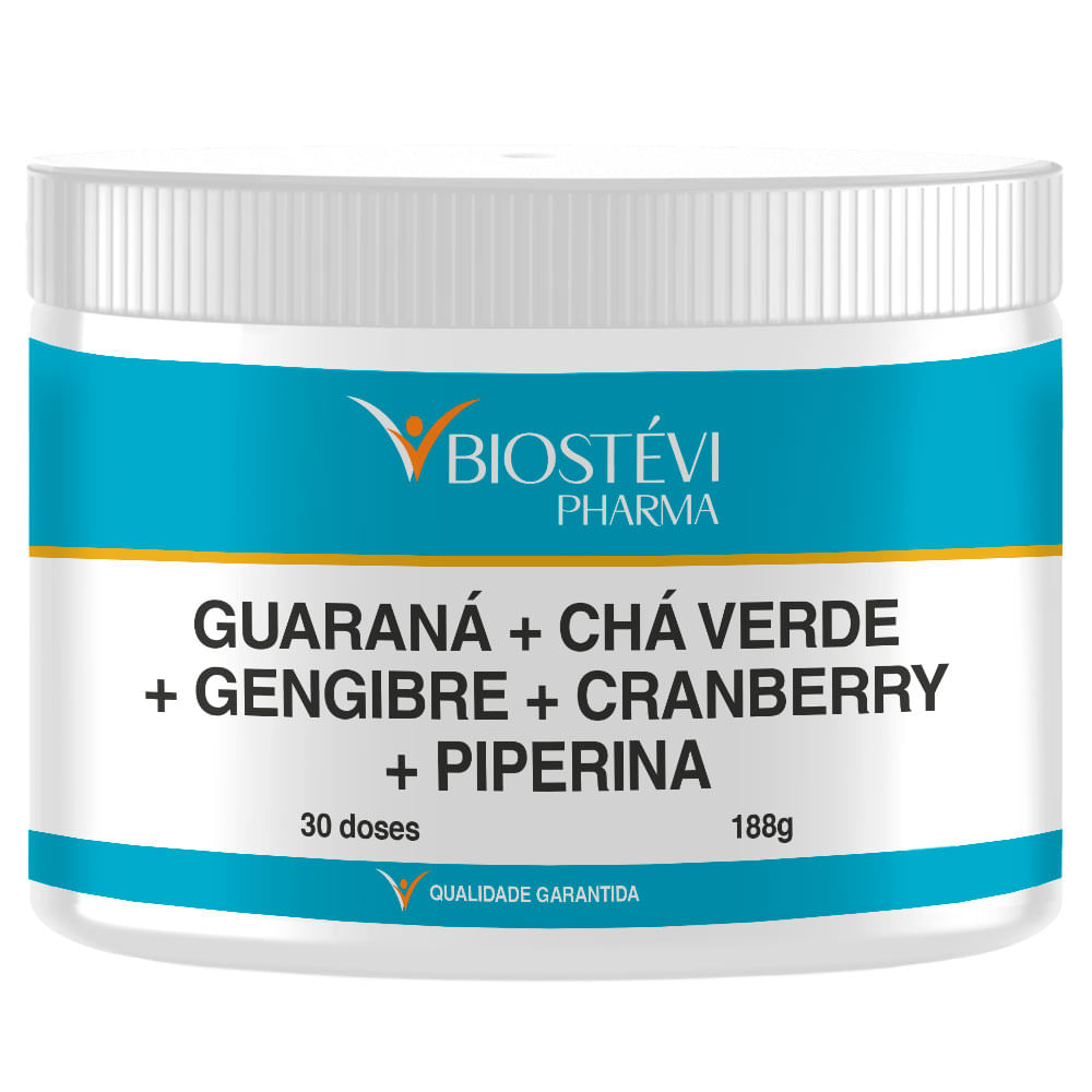 Guaraná Ext Seco 250mg Chá Verde Ext Seco 250mg Gengibre Ext Seco 500mg Cranberry Ext Seco 500mg Piperina 10mg Sabor Frutas Vermelhas |