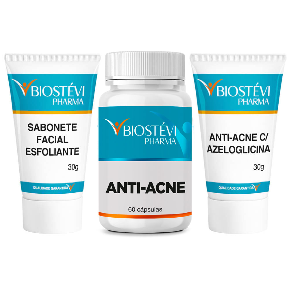 | Modo de Usar | Sabonete Esfoliante Aplicar na face de 1 a 2 vezes por semana, massageando durante 5 minutos e depois enxaguar. Anti-acne: Tomar 1 cápsula ao dia ou conforme orientação de um profissional habilitado. Anti-acne Gel Creme com Azeloglicina: Aplicar na face 2 vezes ao dia ou conforme orientação de um profissional habilitado. |