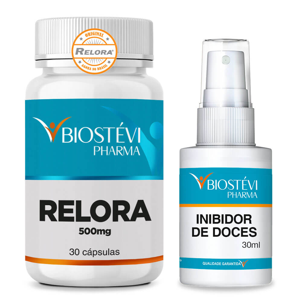 | Modo de Usar | Relora: Tomar 1 cápsula ao dia ou conforme orientação de um profissional habilitado. Spray Inibidor de Doce: Borrifar sobre a língua 3x ao dia. |