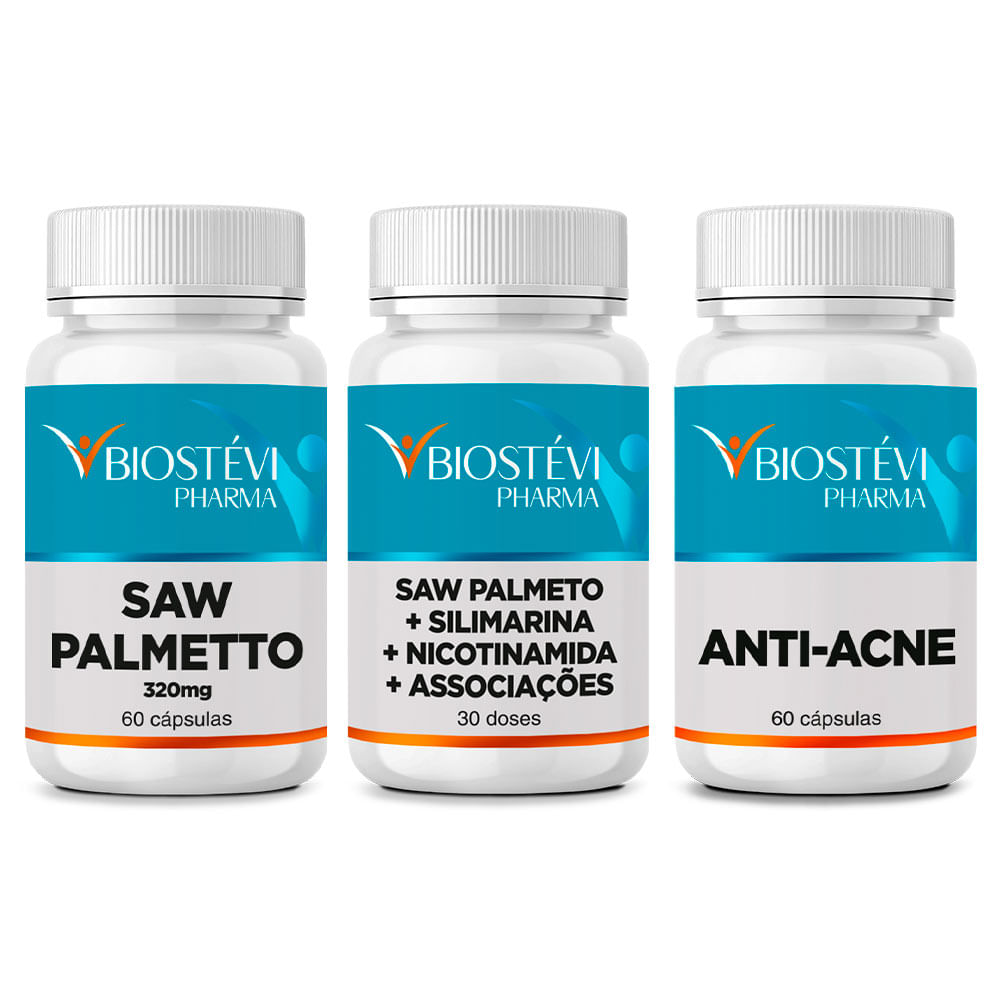 | Linha1-Paragrafo | O Kit para Controle de Espinhas, reúne três produtos altamente indicados para esse fim, são eles: Saw Palmetto, Composto Redutor de DHT e Anti-Acne.
