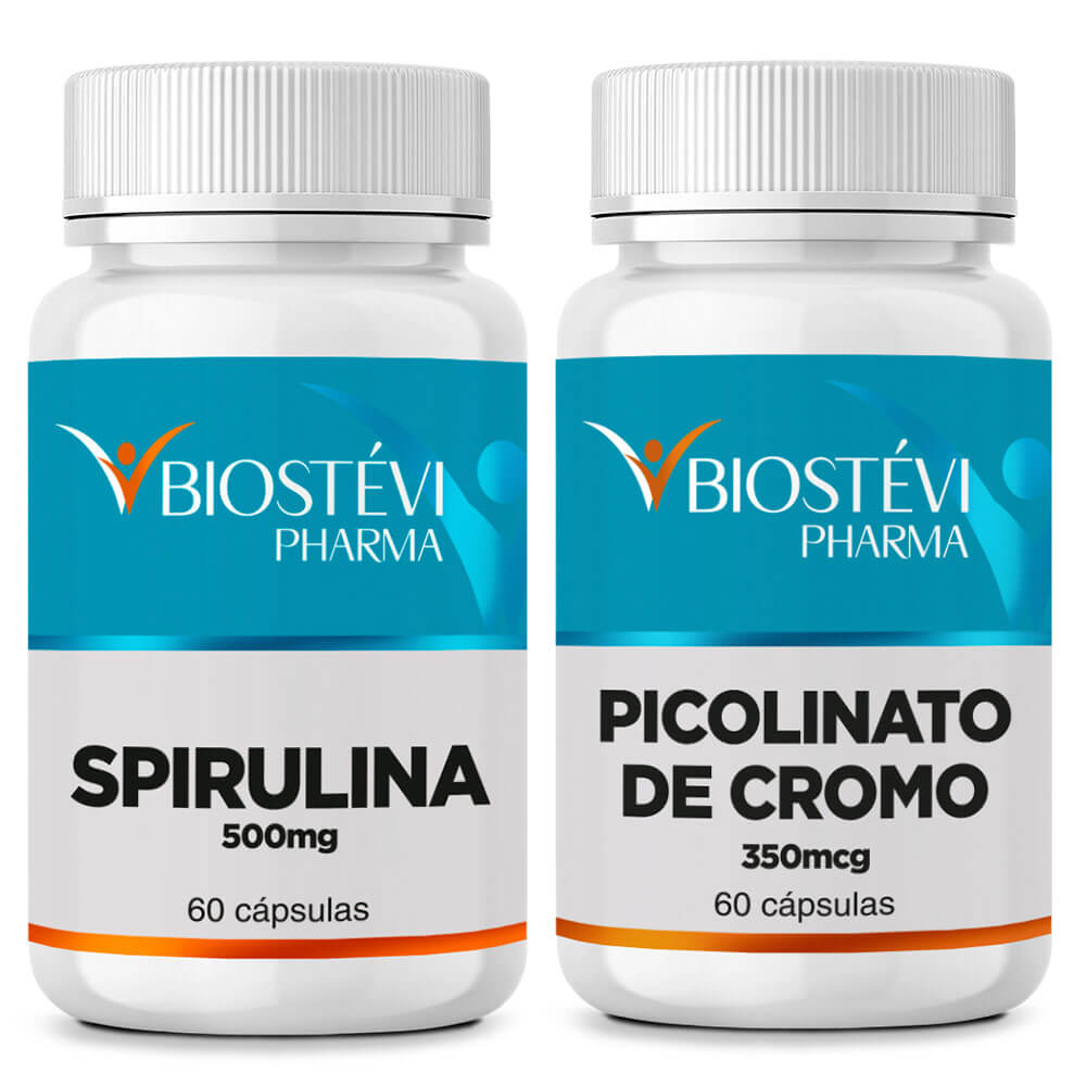 Cada cápsula contém Spirulina 500mg* *Excipiente qsp Frasco contendo 60 cápsulas de Picolinato de Cromo Cada cápsula contém Picolinato de Cromo 350mcg* *Excipiente qsp |