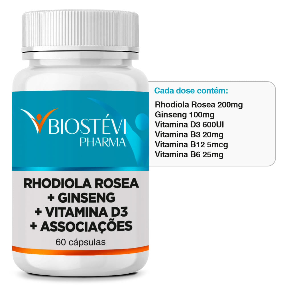 Combate Desânimo e Fadiga | Rhodiola Rósea 200mg + Ginseng 100mg + Vitamina D3 600UI + Associações 60 Cápsulas