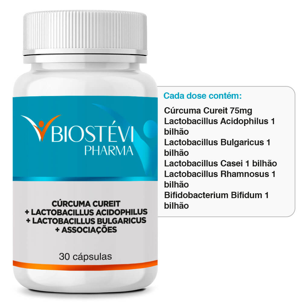 Cureit 75mg Lactobacilos Acidophilus 1blh Lactobacilos Bifidobacterium Bifidum 1blh Lactobacilos Bulgaricus 1blh Lactobacilos Casei 1blh Lactobacilos Rhamnosus 1blh Frasco contendo 30 Cápsulas. |