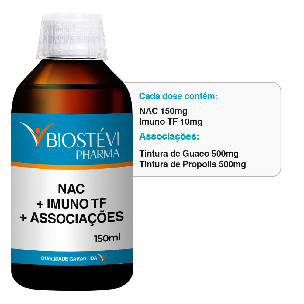Imuno TF 10mg NAC 150mg Tintura de Guaco 500mg Tintura de Própolis 500mg Frasco contendo Xarope q.s.p 150ml. |